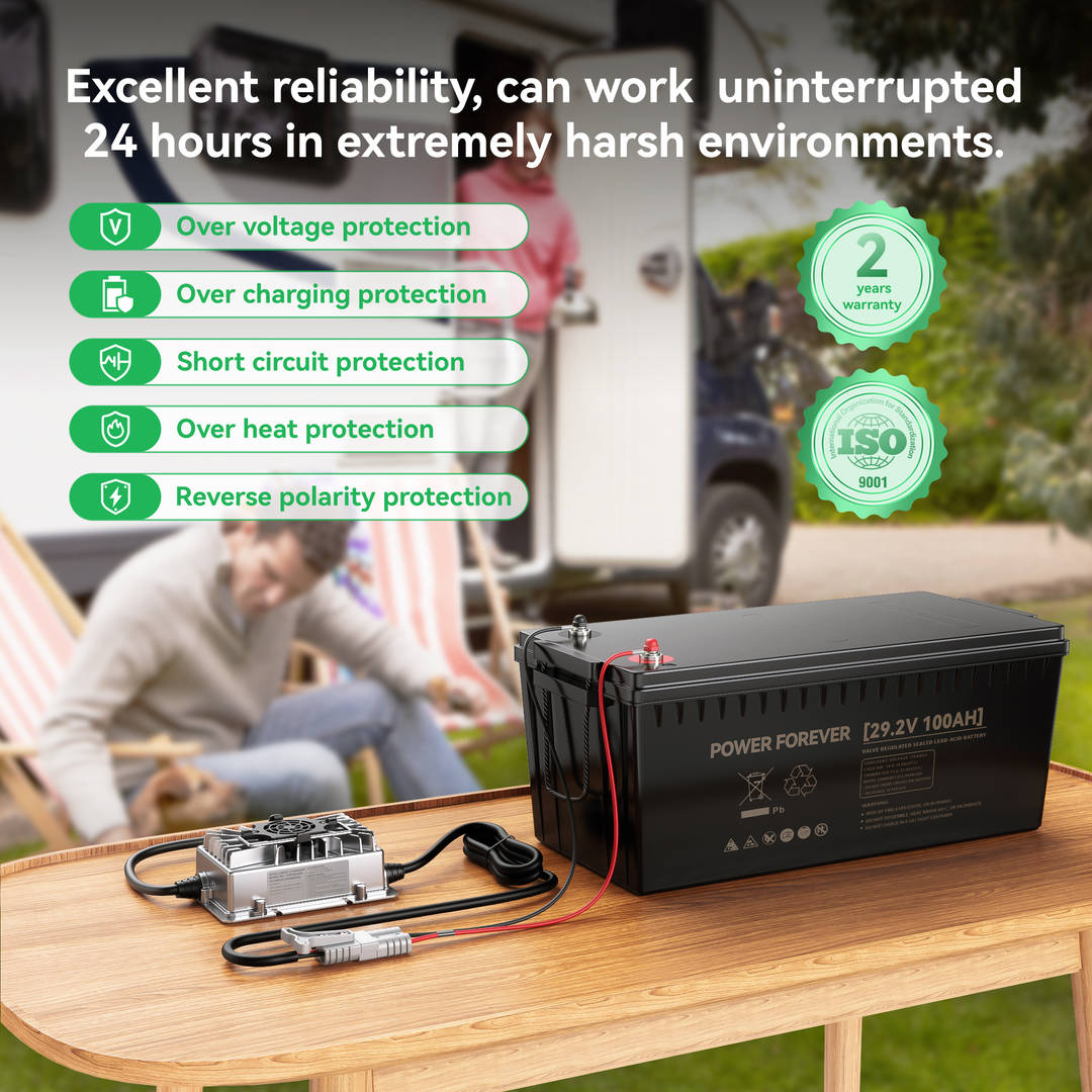 Venta caliente de fábrica IP65 impermeable 24V 25.6V 29.2V 29.4V 15amp cargador inteligente para carretilla elevadora eléctrica / apilador