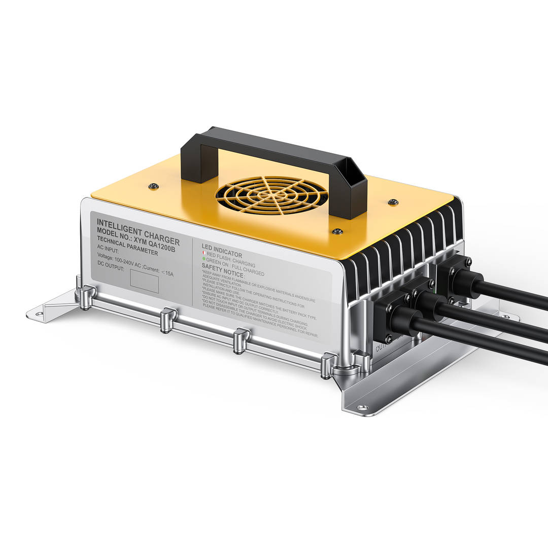 Waterproof Charger Product shell adopts integrated extruded aluminum sealing structure, The active cooling fan adopts potting structure design to ensure long service life. Reliable product engineering and years of industry validation make the charger suitable for use in harsh environments. It suitable for flooded lead acid batteries, sealed lead acid batteries,lithium-ion batteries, LifePO4 batteries, nickle cadmium batteries and etc. They are used to cycle charge or floating charge battery pack.