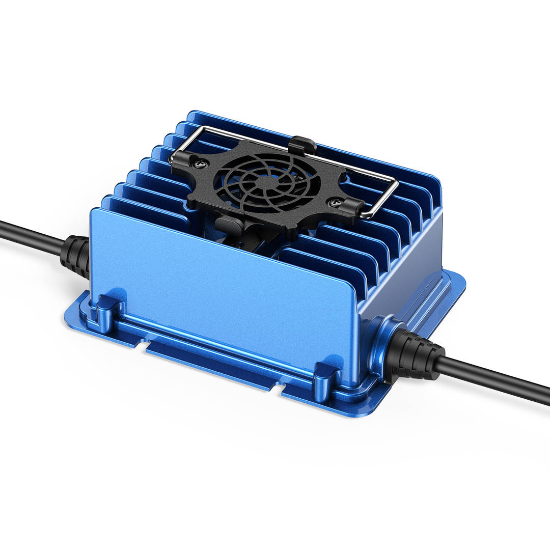 Específicamente, cuando el cargador carga una batería de litio de 57,6V, y alcanza la etapa de voltaje constante de 57,6V y la corriente alcanza los 2A, el cargador se corta automáticamente; Cuando el cargador carga una batería de plomo-ácido de 57,6V y alcanza la etapa de voltaje constante de 57,6V y la corriente alcanza los 5A, el cargador cambia a la etapa de carga de flotación de 55,2V. Si utiliza el cargador diseñado para baterías de litio para cargar baterías de plomo-ácido , de esta forma reducirá la vida útil de las baterías de plomo-ácido debido a la falta de carga flotante de 55,2v; Si utiliza el cargador diseñado para baterías de plomo-ácido para cargar baterías de litio , de esta forma hará que la batería de litio no se cargue completamente debido al proceso de carga flotante de 55,2v. Por lo tanto, recomendamos que las baterías de plomo-ácido y las baterías de litio sean cargadas por sus cargadores especialmente diseñados respectivamente.