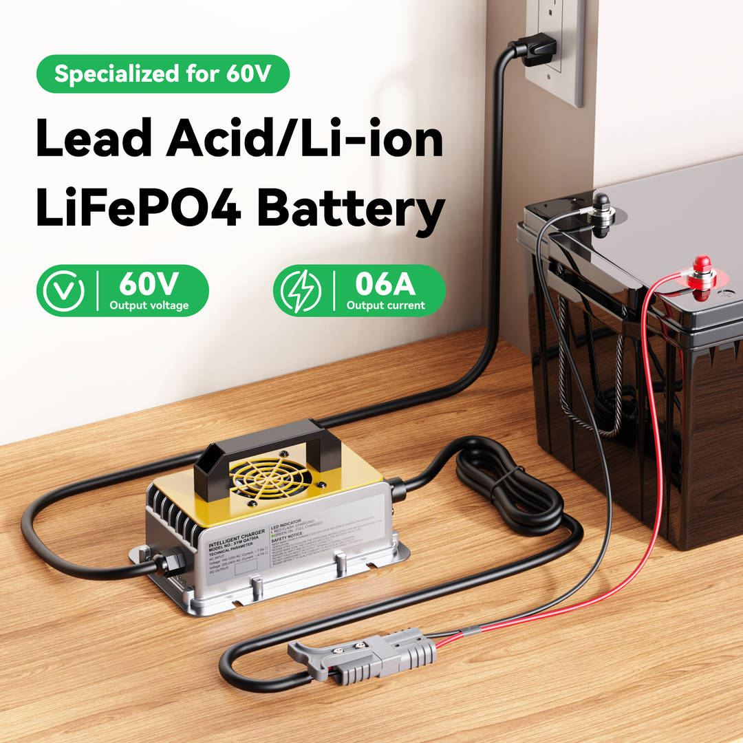 Specifically, when the charger charges a 57.6V lithium battery, and reaches the constant voltage stage of 57.6V and the current reaches 2A, the charger cut off automatically; When the charger charges a 57.6V lead-acid battery and reaches the constant voltage stage of 57.6V and the current reaches 5A, the charger switches to the float charge stage of 55.2V. If use the charger which designed for lithium batteries to charge lead acid batteries , this way will reduce the life of lead acid batteries due to the lack of floating charging 55.2v; If use the charger which designed for lead acid batteries to charge lithium batteries , this way will cause the lithium battery to not be fully charged due to the process of floating charging 55.2v. Therefore, we recommend that lead-acid batteries and lithium batteries be charged by their specially designed chargers respectively.