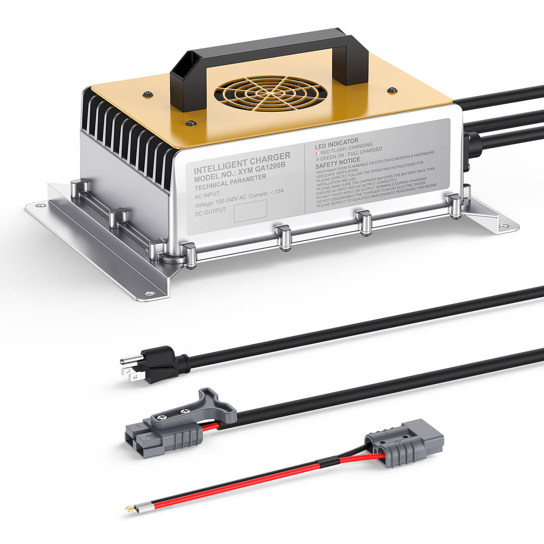 Waterproof Charger Product shell adopts integrated extruded aluminum sealing structure, The active cooling fan adopts potting structure design to ensure long service life. Reliable product engineering and years of industry validation make the charger suitable for use in harsh environments. It suitable for flooded lead acid batteries, sealed lead acid batteries,lithium-ion batteries, LifePO4 batteries, nickle cadmium batteries and etc. They are used to cycle charge or floating charge battery pack.