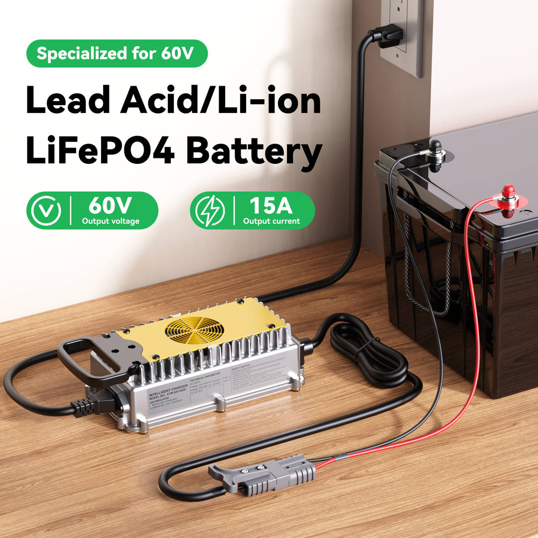 Specifically, when the charger charges a 57.6V lithium battery, and reaches the constant voltage stage of 57.6V and the current reaches 2A, the charger cut off automatically; When the charger charges a 57.6V lead-acid battery and reaches the constant voltage stage of 57.6V and the current reaches 5A, the charger switches to the float charge stage of 55.2V. If use the charger which designed for lithium batteries to charge lead acid batteries , this way will reduce the life of lead acid batteries due to the lack of floating charging 55.2v; If use the charger which designed for lead acid batteries to charge lithium batteries , this way will cause the lithium battery to not be fully charged due to the process of floating charging 55.2v. Therefore, we recommend that lead-acid batteries and lithium batteries be charged by their specially designed chargers respectively.