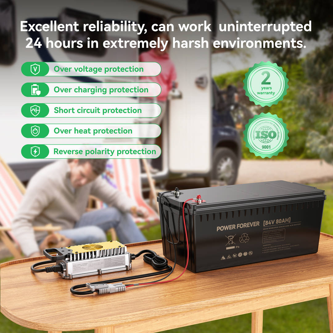 This charger is designed with multiple safety functions, such as overcharge protection, short circuit protection, reverse polarity protection, etc., to prevent any damage to the battery pack or the charger itself. The charger is also designed to automatically detect the battery pack charging level and adjust the charging rate accordingly to ensure safe and efficient charging every time.