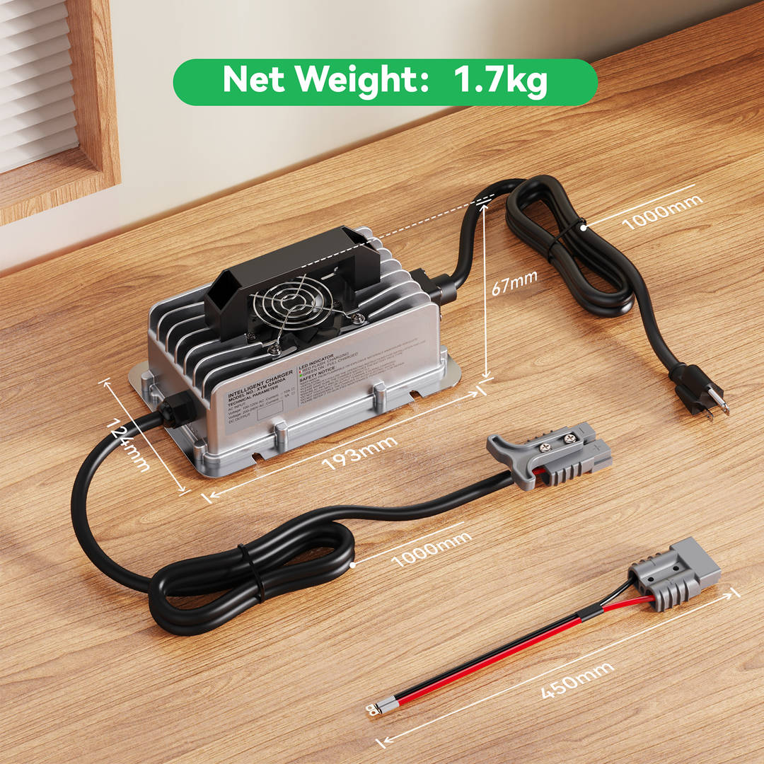 This charger is designed with multiple safety functions, such as overcharge protection, short circuit protection and reverse polarity protection to prevent any damage to the battery pack or the charger itself. The charger is also designed to automatically detect the charge level of the battery pack and adjust the charging rate accordingly to ensure safe and efficient charging every time.